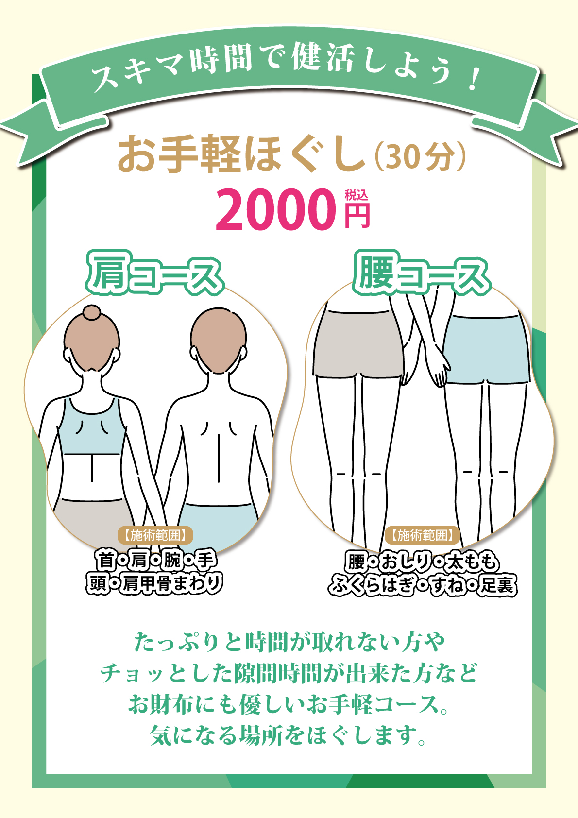 お手軽ほぐし30分【肩コース】【腰コース】
